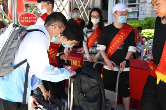今年依旧少了父母送孩子入校的身影,但是增添了学院对新生的关心。为方便新生的注册报到,学院将志愿者分为接车组、行李寄存组、注册报到组,多对一引导新生有序、高效地完成报到。