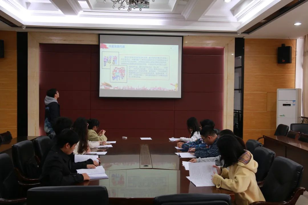 院楼南401开展了以“坚持实践育人,培育新时代好青年”为主题的学习活动,重点学习共青团中央、全国学联近日印发的《关于增强新时代大学生社会实践活动实效 深化共青团实践育人工作的意见》文件精神。