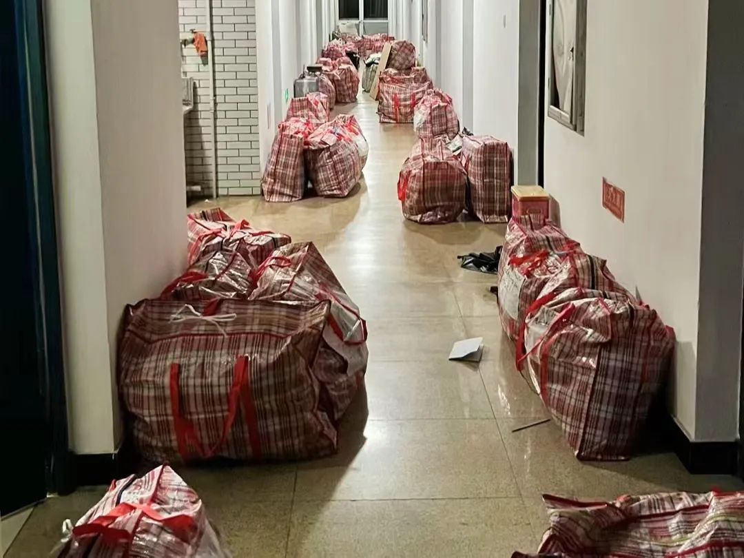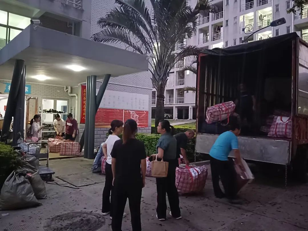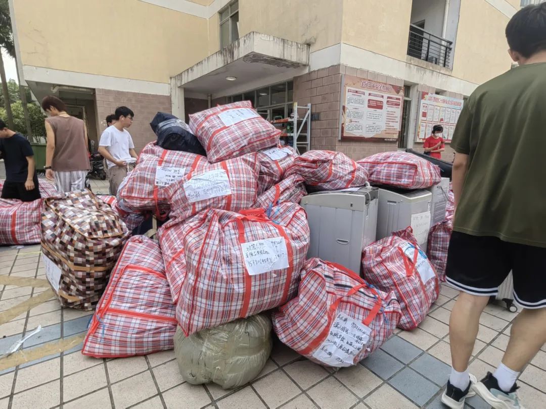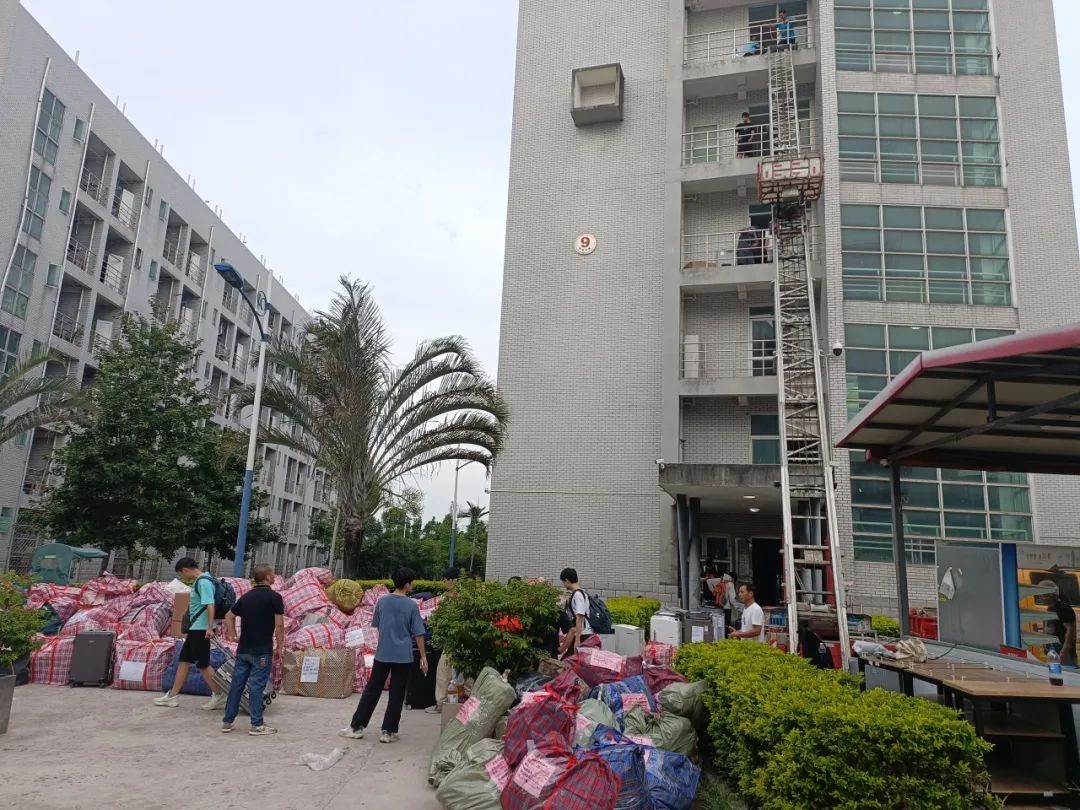 提前抵达旗山的学生负责人配合搬运人员,将各楼层的行李分类堆放,以便依次送到相应楼层口。在学生们认真整理新宿舍的同时,搬迁工作顺利落下帷幕。
