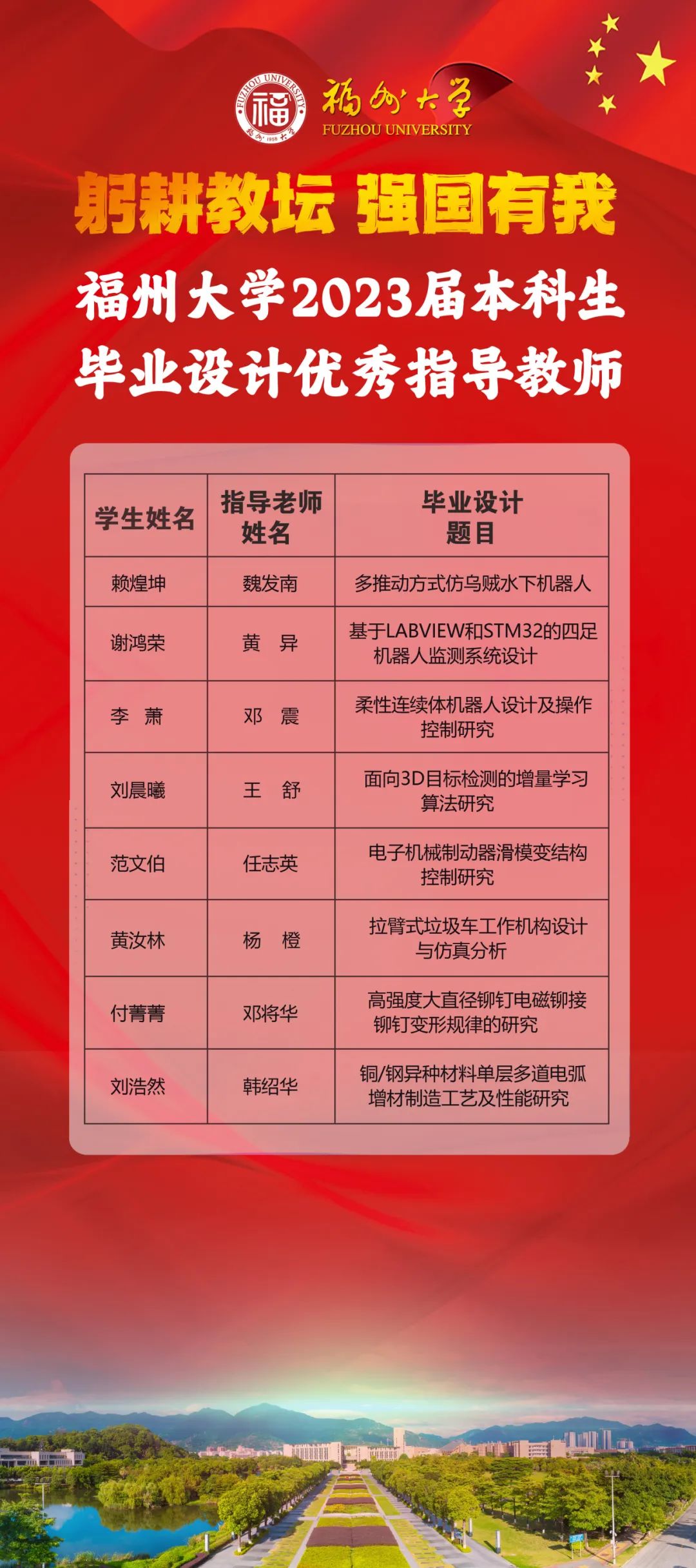 值此教师节之际,向受到表彰的各位老师和团队表示热烈的祝贺和崇高的敬意!向辛勤耕耘、潜心育人的全院教职员工致以诚挚的问候和良好的祝愿!
