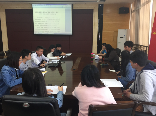 研究生辅导员贾静老师召集研究生党员干部开展关于向廖俊波同志学习的会议,研究生会组织部、研究生各党支部书记、副书记参与本次的习。