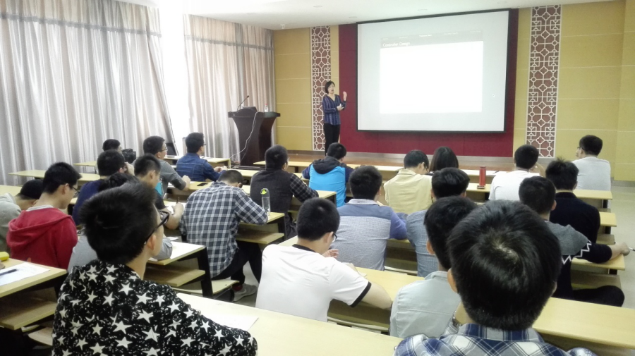 在何炳蔚教授简短介绍潘亚君教授之后,场下传来了同学们热烈的掌声,紧接着,潘亚君教授开始了自己今天的讲座。潘亚君教授首先讲解了自己研究的应用,并强调手术训练应用中的触觉系统需要高精度的力反馈,然而,虚拟环境(VE)的高分辨率模型可以是计算非常密集的,并且能降低力反馈更新速率。随后,潘亚君教授详细介绍了这项工作的目的是通过开发一个预测器来提高透明度也就是将复杂非线性VE逼近具有更高更新速率的线性VE,在介绍过程中,在场同学们听得很认真。之后,潘亚君教授阐述到她的研究是通过使用来自更准确但更慢的VE的反馈,而且说到预测器可以向操作者提供增加的透明度。接着,潘亚君教授详细介绍了预测器和触觉控制器的完全控制设计可以被考虑用于非线性触觉装置,而且,预测器是使用基于Lyapunov的方法,通过线性矩阵不等式的数值解来设计的,并且使用投影类型自适应法预测器还可以用来估计未知的VE参数。最后,潘亚君教授强调仿真结果表明,该方法的有效性能预测未知并且时变的VE参数。此次讲座在在场同学们热烈的掌声中结束,之后,同学们还纷纷上台继续和潘亚君教授讨论自己的想法和观点,会议室学术氛围浓厚。