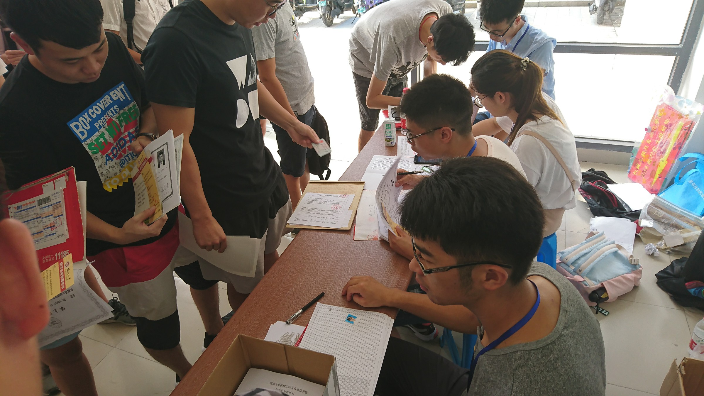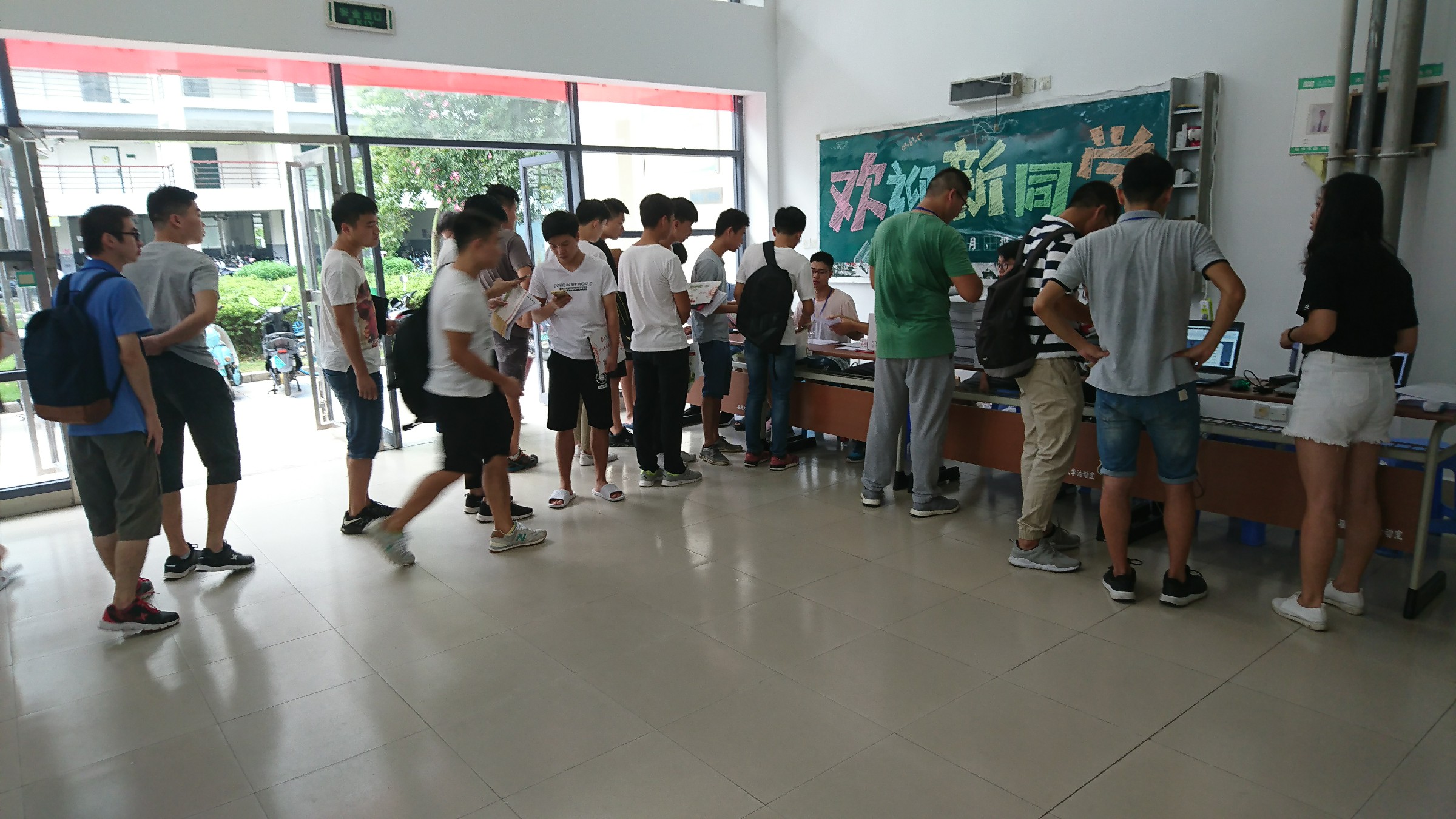 迎新报到处布置了给予新生祝福语的条幅和欢迎新生的喷绘。研究生会成员和老师热情帮助新生完成报道工作,解答新生遇到的各种问题,帮助新生熟悉学校,让新生体会到了动漫屋