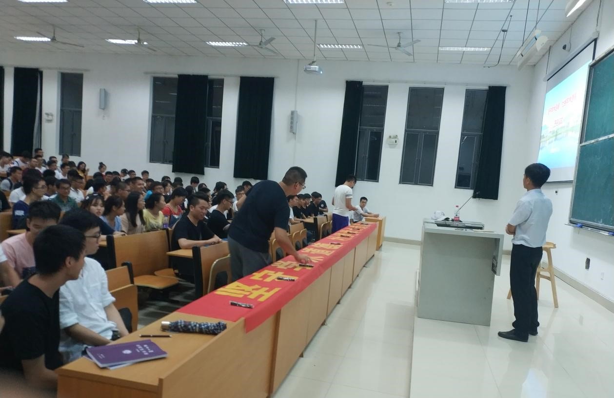 讲座后,新生辅导员林成金老师组织新研究生开展了关于承诺学术端正的签名活动,学生们纷纷参与其中。