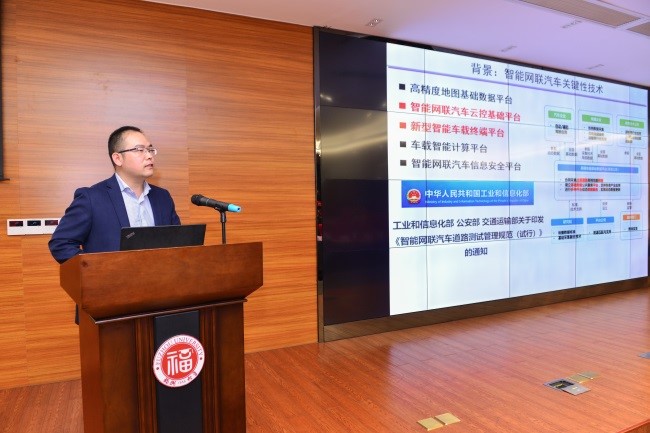 研讨会的最后,中科院海西研究院泉州装备制造研究所研究员,课题组组长魏宪研究员带来主题为“人工智能中大数据表示学习研究”的学术报告,首先介绍了智能网联汽车的关键性技术,指出了智能驾驶技术的各方面技术研发难点,介绍了智能驾驶技术架构,所研发的智能驾驶技术在成本及技术上的优势,现场以视频方式展示了中科院海西研究院泉州装备制造研究所所研发的智能驾驶技术目前取得的重大进展,并阐述了未来在突破自动驾驶的若干关键性技术,带动了与会师生的热烈讨论。