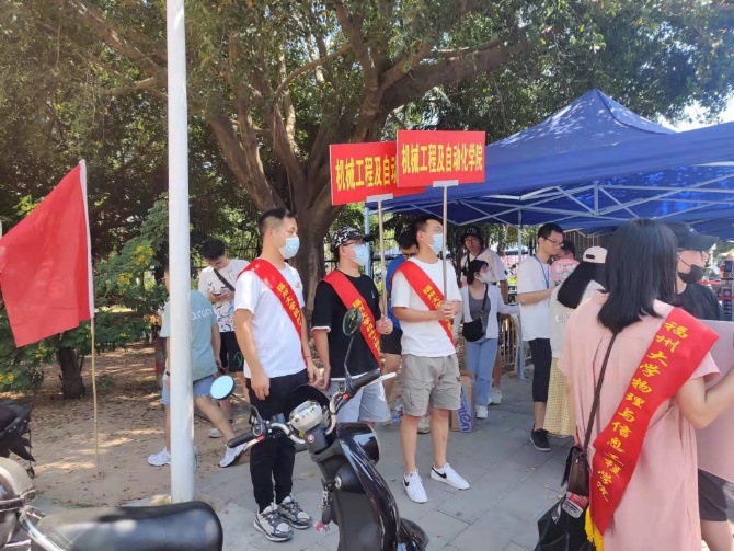 迎新点,等待前来报到的新生。引导志愿者们积极为报到的同学们答疑解惑,帮助办理入学的各项手续,让新同学们感受到了动漫屋