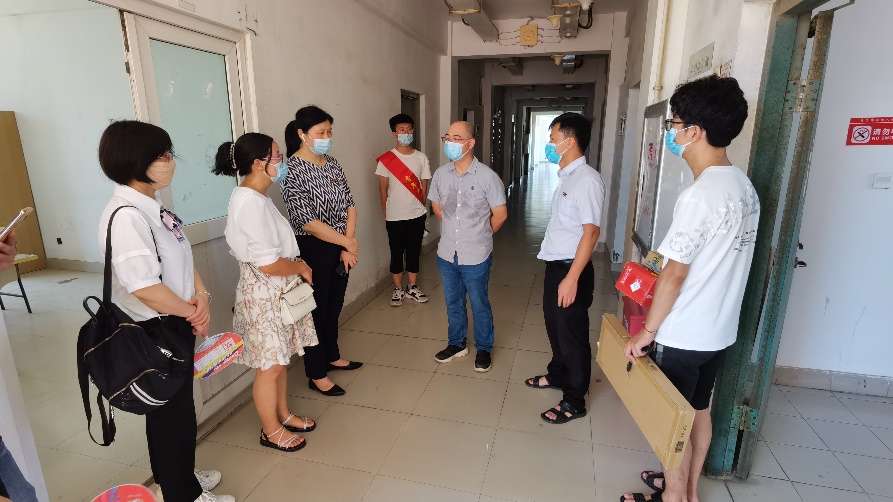 辅导员在远志苑44号楼迎新点对新生报到工作进行指导,并走访了新生宿舍,聆听新生的声音,解答新生的疑惑,对新生和志愿者表达了热情的关心和问候。