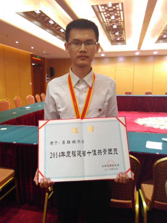 热烈祝贺2011级吕联林获得福建省十佳共青团员称号!
