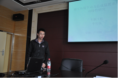 第二位出场的嘉宾是李智强,他所做的报告题目是《整车环境下动力总成悬置系统振动特性研究》。李智强先简单的介绍了机动力总成悬置系统,然后根据悬置系统具有的支持、隔振、保护、限位作用等特点详细讲述了其所做的研究内容。其内容包括系统的建模,虚拟出相机的形状,模型的振动特性分析与优化。在场的同学们认真的听取了李智强的精彩报告后,都对汽车的整个构造和机动力总成悬置系统有了更深刻的了解。