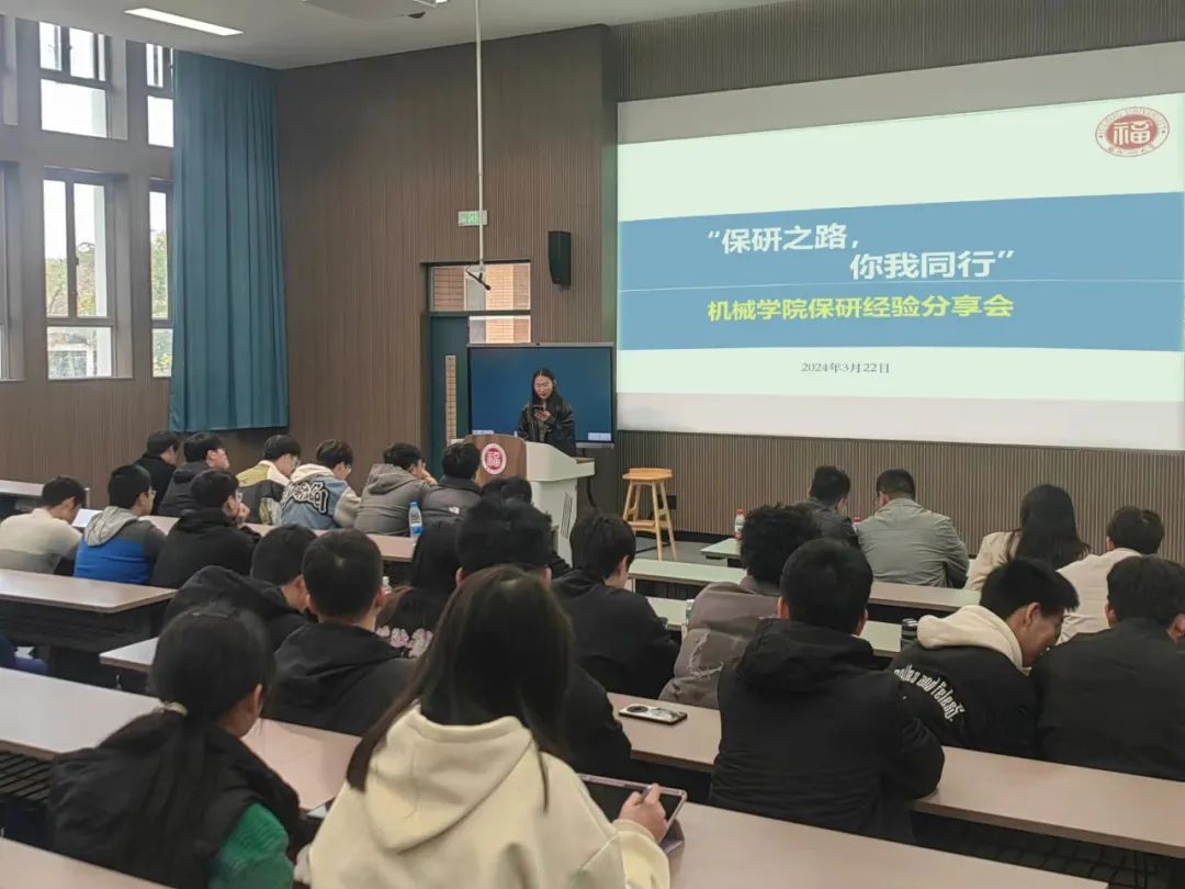 开展“保研之路,你我同行”保研经验分享会。此次分享会邀请了六位成功保研的优秀大四学生分享经验,杜恒副院长出席并作总结讲话,院团委副书记李辉容、李雨铮老师、张志忠老师、辅导员蒋文怡和低年级学生参加活动。