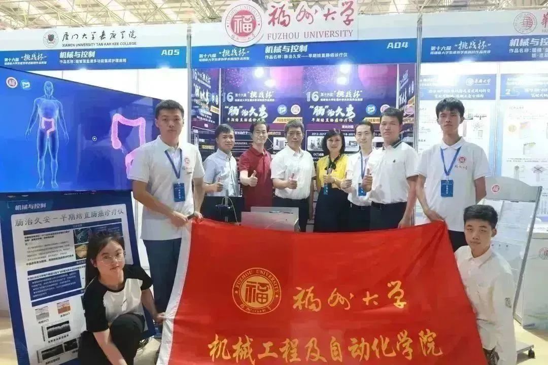 黄异、钟舜聪、张秋坤老师指导,邓耀森、黄永林、石阮晨、熊依菲、王云浩、陈剑悦等同学参与的《“肠”治久安——早期结直肠癌诊疗仪》项目在众多项目中脱颖而出,荣获特等奖。