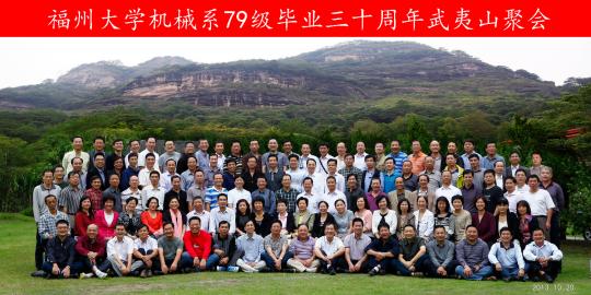 金秋十月,武夷山天高气爽,丹山碧水。10月19日下午,动漫屋 79级校友140多人从美国、英国、新加坡、新西兰、澳大利亚、日本、澳门和全国各地相聚武夷山,纪念毕业30周年。院党委副书记黄发友教授和林成金老师代表学院参加此次聚会。卅载相逢,万千感慨,大王峰脚下,留下了79级校友永久的友谊和美好的瞬间。