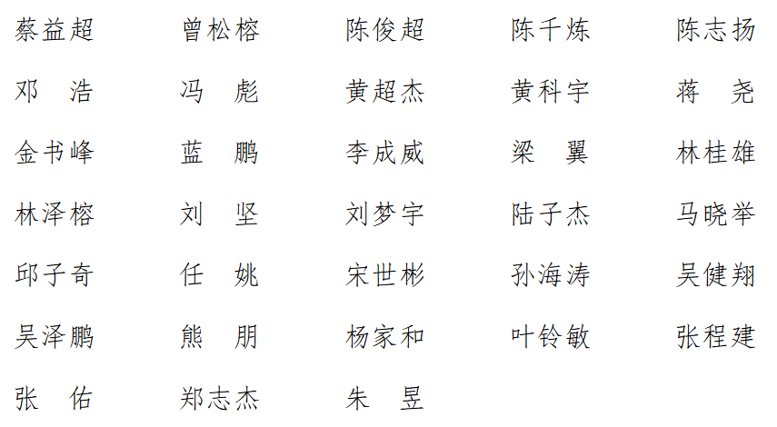 机械设计制造及其自动化五班(43人)
