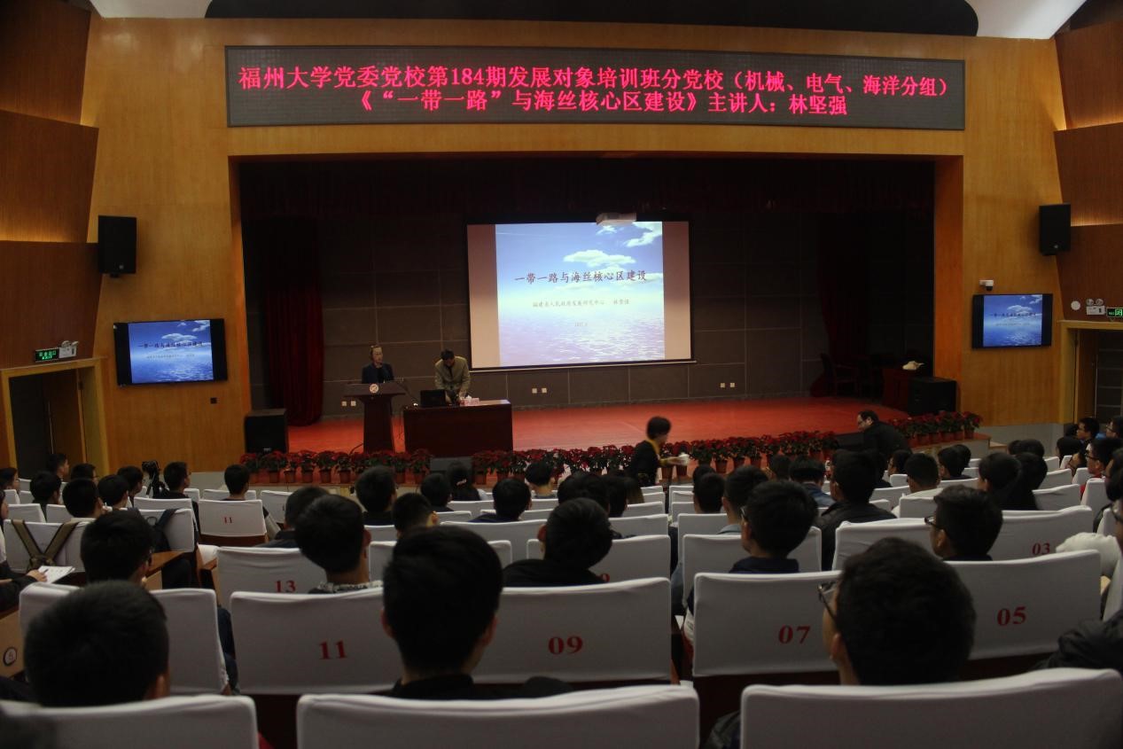 开展党校第184期发展对象培训班集中授课,省人民政府发展研究中心外经处处长、副研究员林坚强老师为同学们上了《“一带一路”与海丝核心区建设》的党课。动漫屋