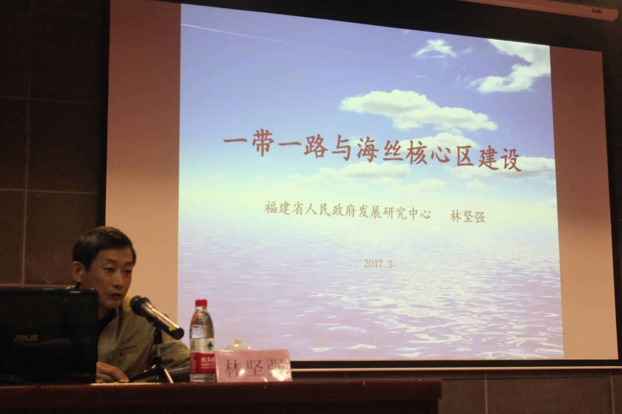最后,林坚强老师结合福建同海上丝绸之路的历史渊源,阐述了福建建设海丝核心区的优势及其功能定位,并勉励在座的学员们抓住时代机遇,提升自身实力,拓宽视野,为福建海丝核心区建设贡献力量。