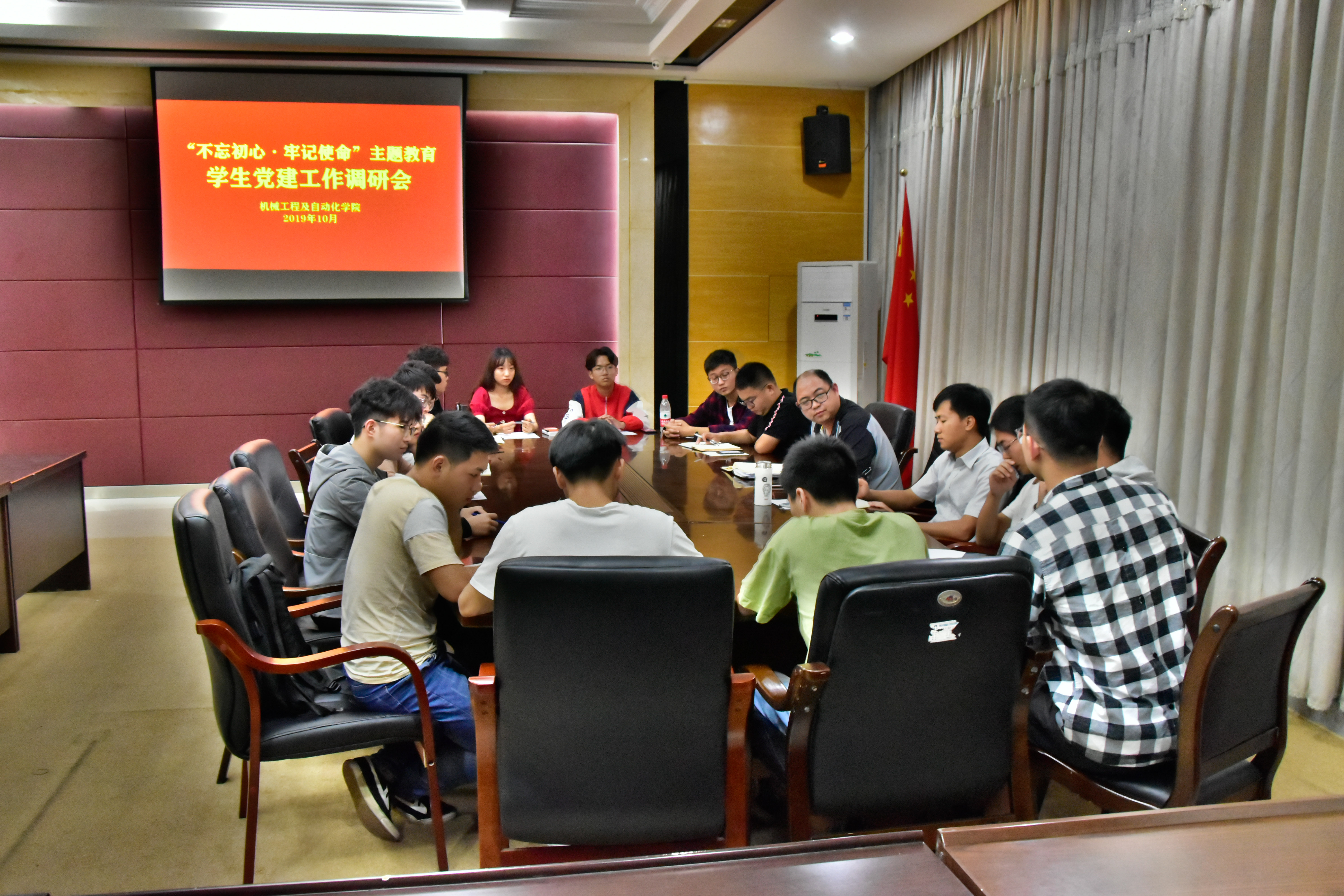 党委在机械南楼401召开学生党建工作调研会。院党委林文麟副书记、团委书记林成金、2017级辅导员陈伯豪、2019级辅导员李辉容以及部分入党积极分子、发展对象、预备党员和党员参加调研,会议由林成金老师主持。