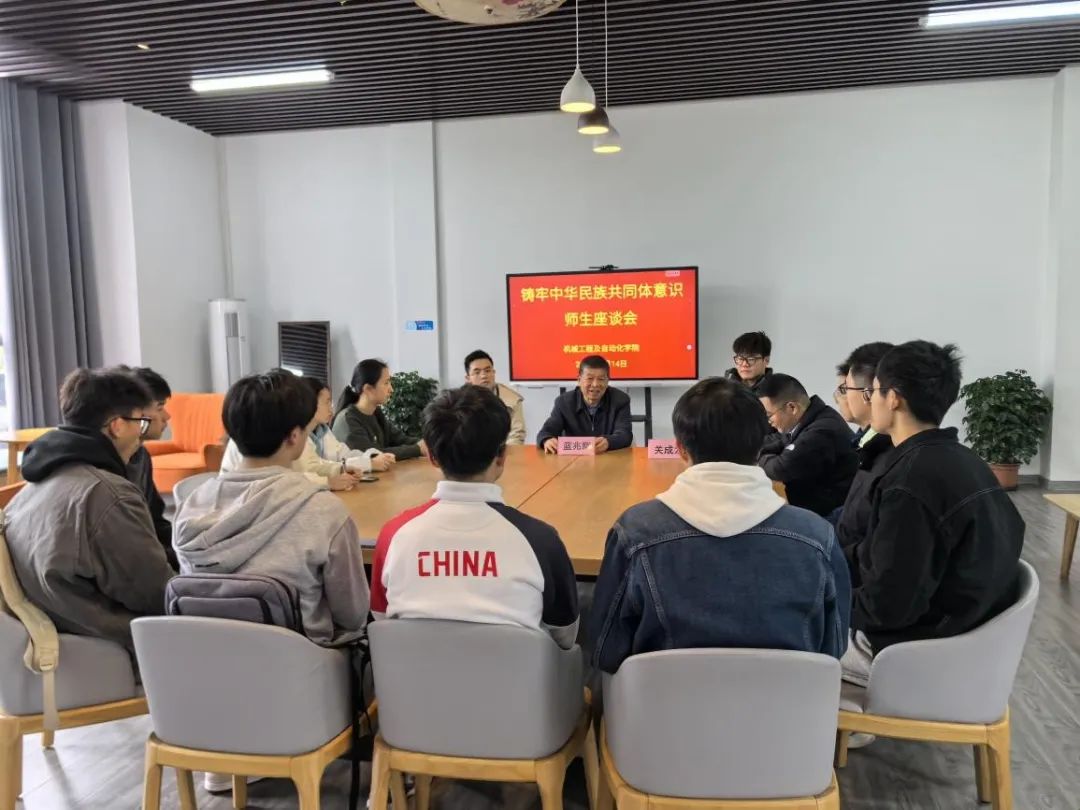 在铜盘校区会议室召开铸牢中华民族共同体意识师生座谈会。学院关工委常务副主任蓝兆辉老师、2023级本科生班主任章小龙老师、关成龙老师、学院团委副书记李辉容老师、2023级本科生辅导员陈妙娜老师及各民族学生代表参与了本次座谈会,会议由李辉容老师主持。
