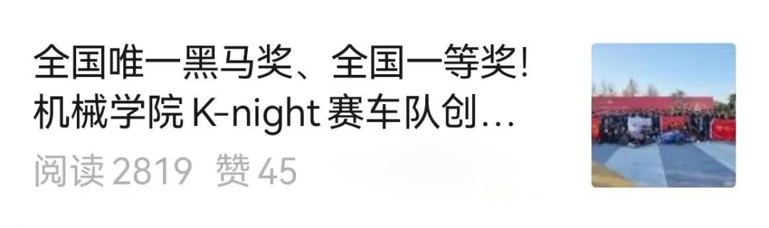 K-night赛车队创历史最好成绩》荣获“十佳微信推文”