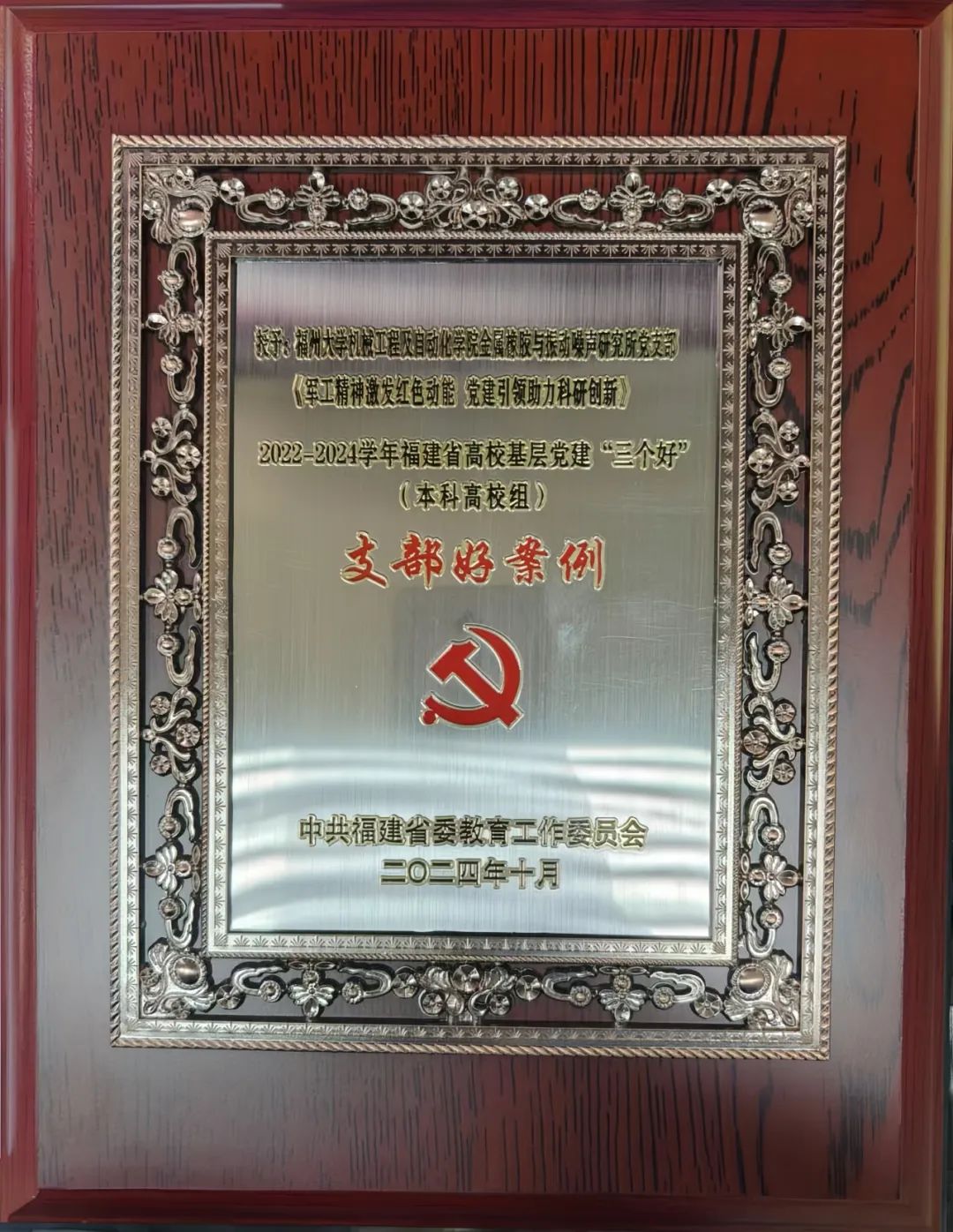 金属橡胶与振动噪声研究所党支部报送的项目荣获2022-2024学年福建省高校基层党建“三个好”——支部好案例(本科高校组)。