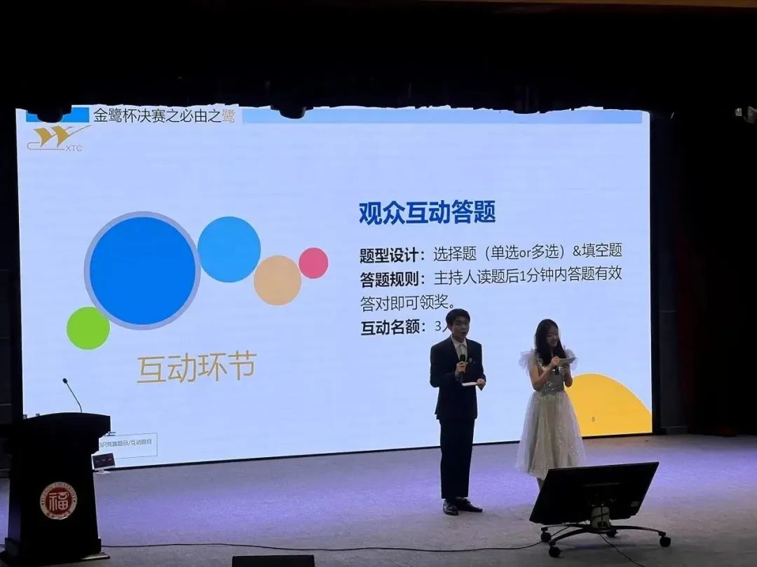 经过初赛激烈的角逐,6支优秀的队伍从中脱颖而出、向冠军发起冲刺。六支队伍依次上台进行团队展示,幽默诙谐的自我介绍赢得观众的阵阵掌声。比赛环节正式开始,进行了“必由之鹭”“小李飞刀”“励志竭金”三个环节,参赛选手们快速的反应能力与丰富的金工刀具知识储备赢得了现场观众的连连赞叹。此次竞赛集竞技性和趣味性于一体,各轮比赛结束后的互动问答、游戏和抽奖环节,让现场观众参与感满满,不断将会场气氛推向高潮。