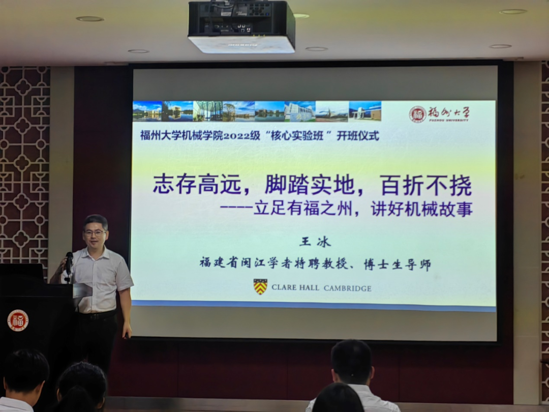 2022级核心实验班开班仪式暨“与博导面对面”活动在机械北楼415顺利举行。活动邀请了院长助理、闽江学者特聘教授、博士生导师王冰教授对学院的科研团队及其科研特色进行了全面介绍。核心实验班班主任李劲林老师、吁鹏飞老师和2021级、2022级核心实验班全体成员参加活动。本次活动由学院团委书记林成金主持。